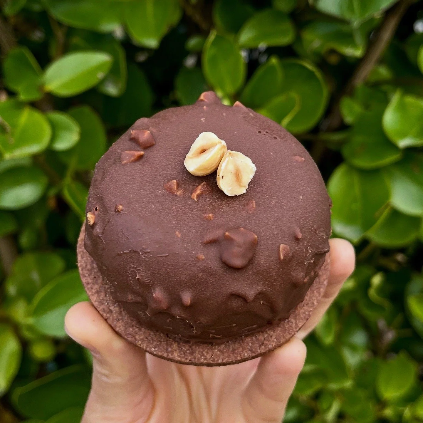 Cocoa biscuit, hazelnut dacquoise, milk chocolate mousse, dark chocolate crémeux, coated in milk chocolate with roasted hazelnuts. Contains no gluten products*